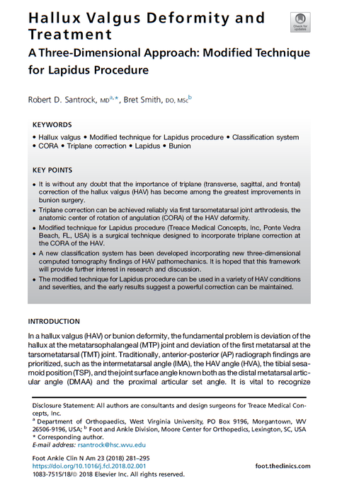 Hallux Valgus Deformity and Treatment A Three-Dimensional Approach Modified Technique for Lapidus Procedure