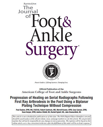 Progression of Healing on Serial Radiographs Following First Ray Arthrodesis in the Foot Using a Biplanar Plating Technique Without Compression